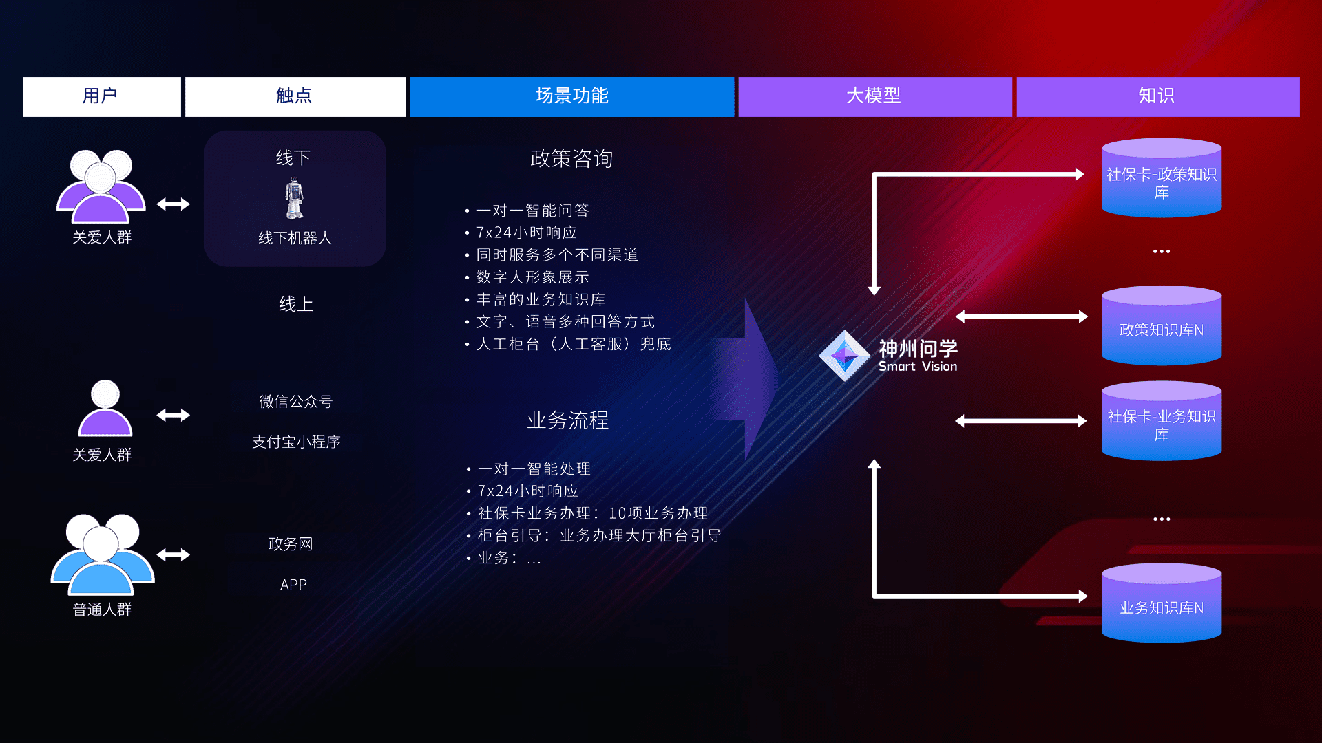 • 线上线下全覆盖:线上提供微信公众号、、支付宝小程序、、、政务网、、、、app多种渠道,,,与线下机器人形成完整服务体系。。